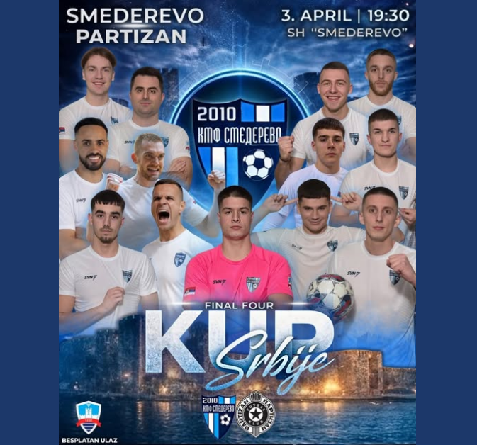 Смедерево ће вечерас бити центар футсал дешавања у Србији, јер у наш град стиже завршница Купа Србије догађај који обећава врхунски спорт, узбуђење и атмосферу за памћење. Домаћин овог престижног такмичења је КМФ Смедерево, што представља велико признање не само за клуб, већ и за читав град. Организација Фајнал фора доноси прилику да Смедеревци уживо прате најбоље футсал екипе у земљи и буду део правог спортског спектакла. У полуфиналном дуелу, снаге ће одмерити КМФ Смедерево и КМФ Партизан, у утакмици која обећава неизвесност, борбу и врхунски футсал. Меч ће бити…