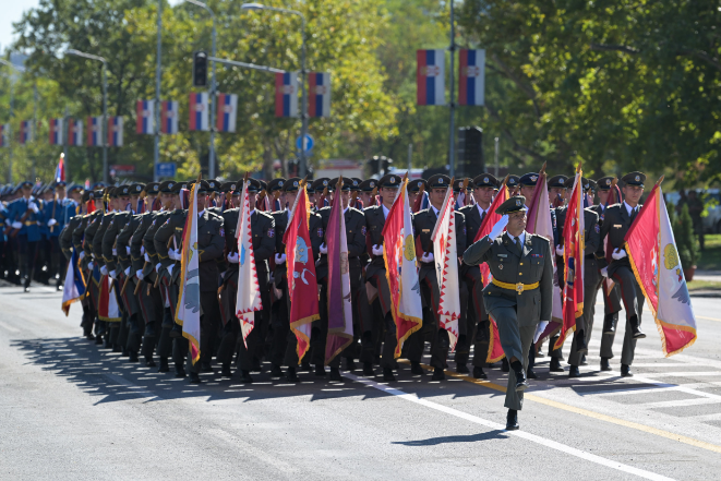Dodao je da je maksimalno angažovana i vojna policija i da će obezbeđivati čitavu trasu kretanja vojnih konvoja i ešalona, i da u pripremi parade učestvuju i sve komunalne službe Grada Beograda, kao i MUP.